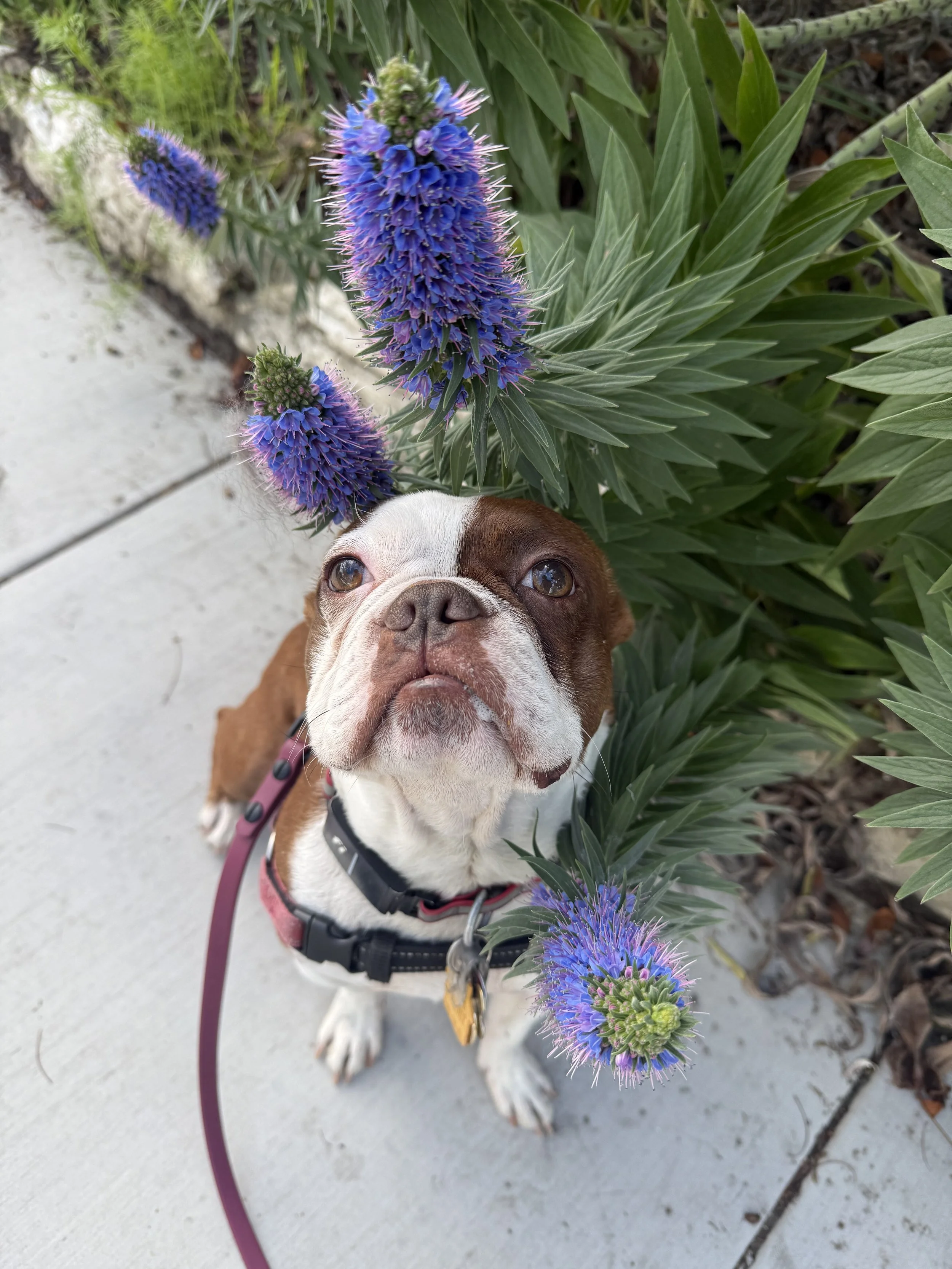 Our four-year-old Boston Terrier, Toby, is a rescue who came to us with significant fear-based trauma. Because he was rescued from the streets, his history was a mystery. He was intensely attached to his beds and a blanket he used for comfort, and he struggled to settle without them. He was resistant to leaving the house for walks and showed a strong aversion to new routes or unfamiliar places. He was also inordinately afraid of common household sounds—avoiding the kitchen entirely—and would react with extreme fear toward inanimate objects like buckets or garbage cans on the sidewalk. To make matters more difficult, he was attacked by a neighbor’s large dog as a puppy, which led to fear-based aggression toward other dogs.